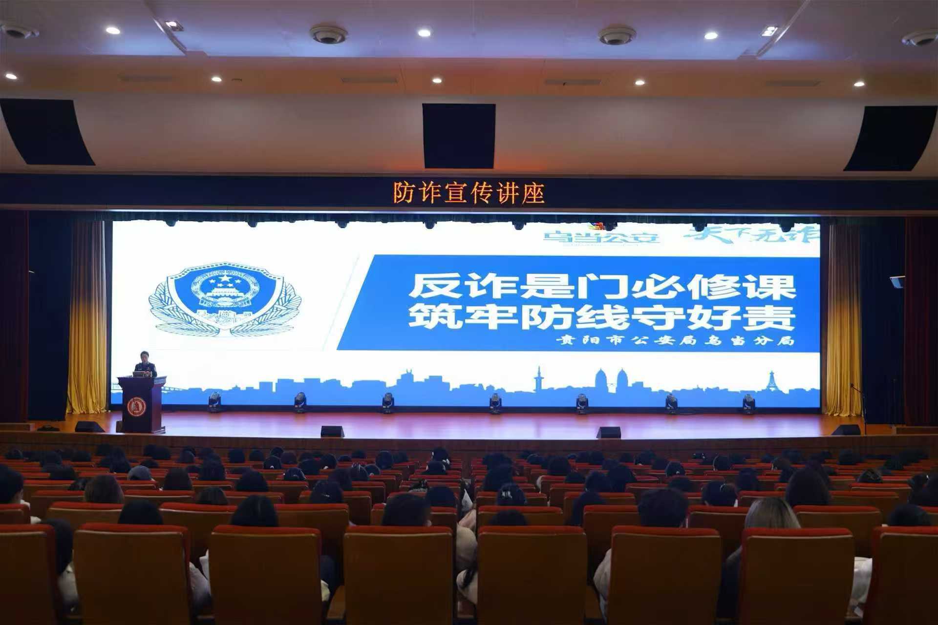 为推进“一站式”平安型学生社区建设,构建"警校社"三位一体的校园防护体系,我校在新学期联合贵阳市公安局乌当分局开展"反诈是门必修课 筑牢防线守好责"主题的开学安全第一课,覆盖全校近300个班级、万余名师生,将反诈防护网直接织进学生社区。为莘莘学子的新学期系好“第一粒安全扣”。