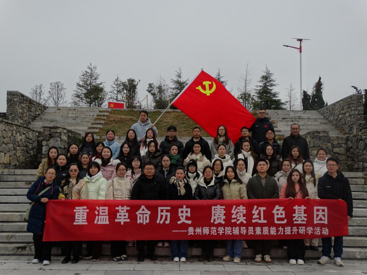 12月5日,我校组织全体专职辅导员及学生管理人员50余人,一同前往贵阳市花溪区高坡乡长征国家文化公园兵临贵阳展示园,开展了为期一天的“重温革命历史,赓续红色基因”为主题的爱国主义教育暨综合素养能力提升活动。此次活动旨在通过沉浸式爱国主义教育研学实践与团队综合素质拓展相结合的方式,引导辅导员队伍坚定理想信念,汲取奋进力量。校党委副书记邹晓青出席活动并讲话。